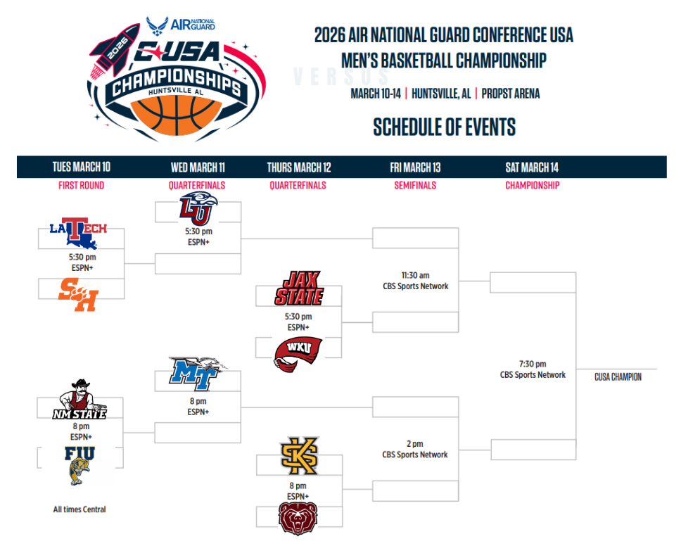 We are not quite halfway through the conference season for men’s basketball but the 2026 men’s basketball Conference USA Tournament which, will be played in Huntsville, Alabama beginning March 10, is inching closer.