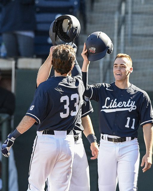 Liberty Flames Baseball swept their weekend series with VCU to kick start the 2018 season. The Flames won Friday 5-4 and took the double header Sunday 14-10 and 4-2 respectively. The most notable game of the weekend was game one of the double header, which saw VCU jump out to a 8-3 lead in the top of the 4th inning before the Flames would come back and eventually take the lead for good on a bases clearing double by DJ Artis.